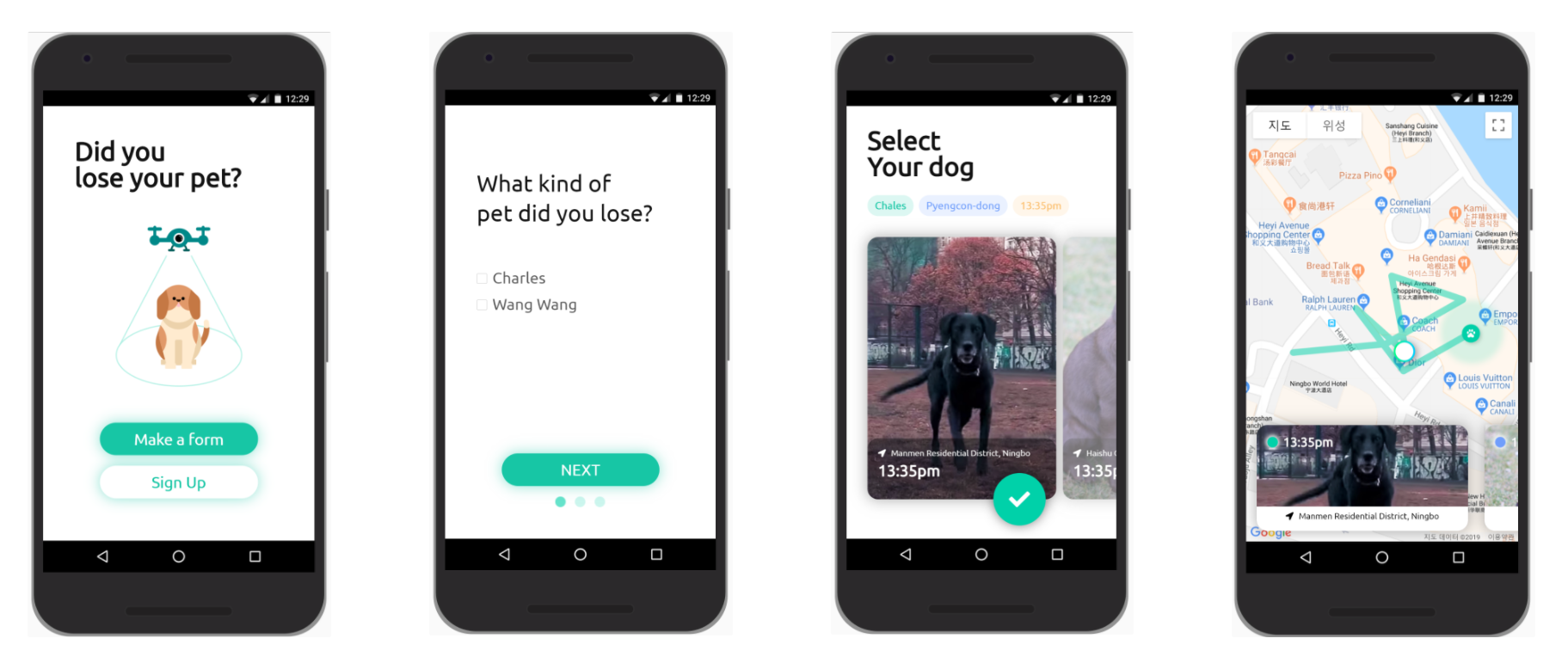 그리고 둘째날은 해커톤이 시작했던 날이다. 중국 대회는 신기하게 개회식에 모든 돈을 다 투자한다. 개회식은 으리으리한 호텔에서 진행되었는데 대회장은 그에 비하면 식사나 장소가 열악했다. 우리 팀은 프론트엔드 1명, 백엔드 2명, AI 1명, 디자이너 1명으로 역할을 배분하고 본격적인 개발에 착수하게 되었다. 대회가 시작하고 개발을 하면서 "드론과 AI를 이용하여 골든타임이 지나기 전에 즉각적으로 잃어버린 반려동물을 찾는 서비스"로 좀 더 명확하게 주제를 정하고 서비스 명은 "WeMeet"으로 정했다. 나는 2019 오픈핵때와 같이 리액트를 이용하여 프론트엔드 전반을 담당했다. 주제는 정해져서 좋았지만, 대회 초반 한국과 다른 전파 상황/분위기때문에 당황하여 결과물 잘 나오지 않았다. 다행히 새벽이 되면서 감이 돌아와 서비스에 맞는 뷰들을 만들어나갔다. 프론트엔드를 개발할 때 서비스가 App적인 경험을 줘야했는데, 네이티브 개발을 해보지 않았고, React Native도 잘 사용한다고 말할 수가 없어서, 이전에 잠깐 써보았던 PWAProgressive Web App을 이용하여 개발을 했다.