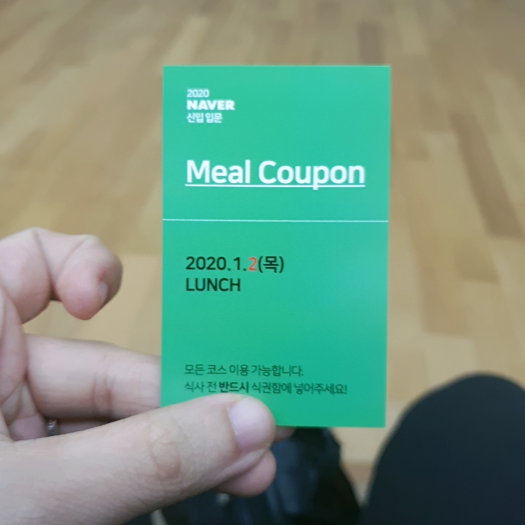 점심이 되고 사내식당에서 밥을 먹게 되었는데, 식권을 제공해줬다. 일반 식권이 아니고 신입 입문 프로그램을 위해 따로 제작한 식권이라 뭔가 신기했다. 오랫만에 먹은 사내식당 밥은 여전히 싸고 맛있었다. 게다가 이번엔 공짜! 근데 무슨 먹는 이야기만 하는 것 같다 🐷