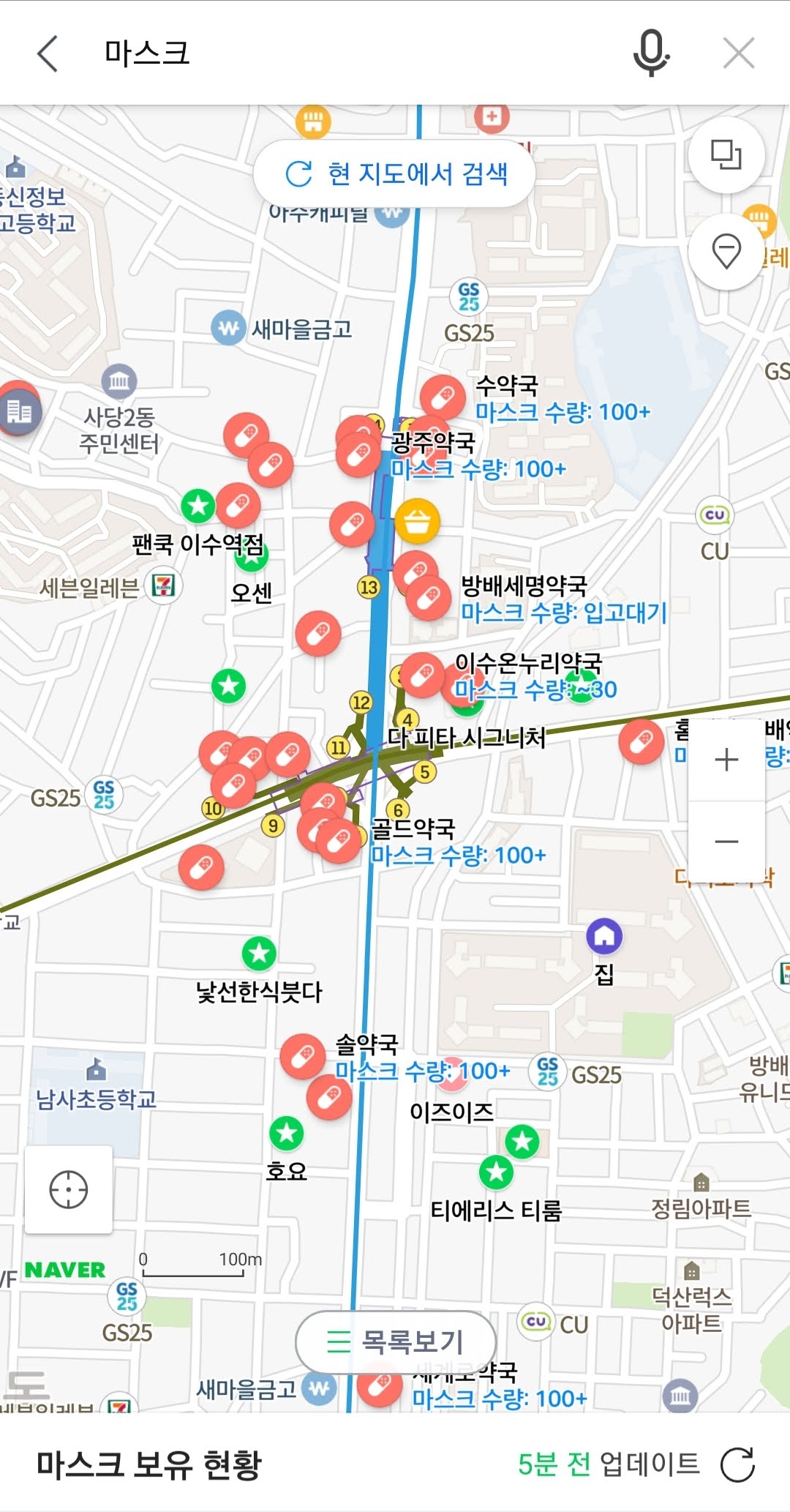 🗺 카카오 지도 - 마스크 재고표시 잘하는 집