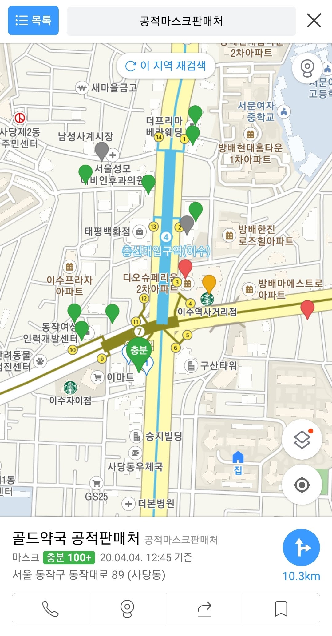 카카오는 국내 IT 기업 답게, 공적마스크 판매처를 찾는 버튼을 앱 위에 띄워놓았다.