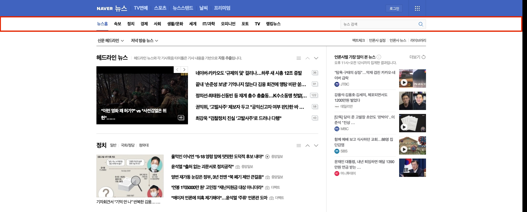 - 사이트 전체에 동일하게 적용되는 최상위 공통 네비게이션