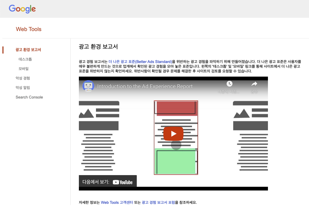 사이트의 광고 경험 문제 해결