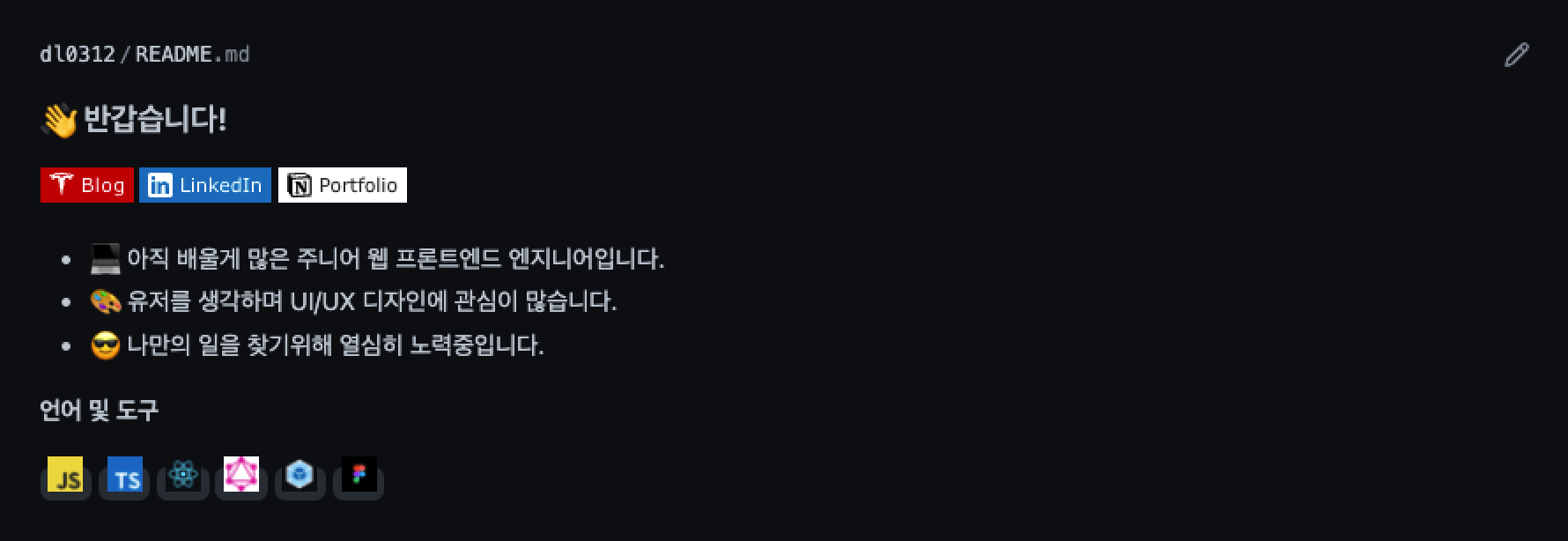 자료조사를 하고, 이 글을 쓰면서 나도 프로필 README를 꾸며보았다.
