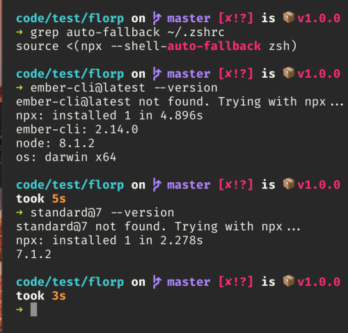 Fellix Saparelli가 추가한 이 놀라운 기능은 이러한 많은 사용 사례에서 npx에 직접 전화할 필요가 없다는 것을 의미합니다! 일반적인 npx 사용과 페일백 간의 주요 차이점은 잠재적으로 위험한 오타쿼팅에 대한 안전망인 pkg@versionsyntax를 사용하지 않는 한 폴백이 새 패키지를 설치하지 않는다는 것입니다.